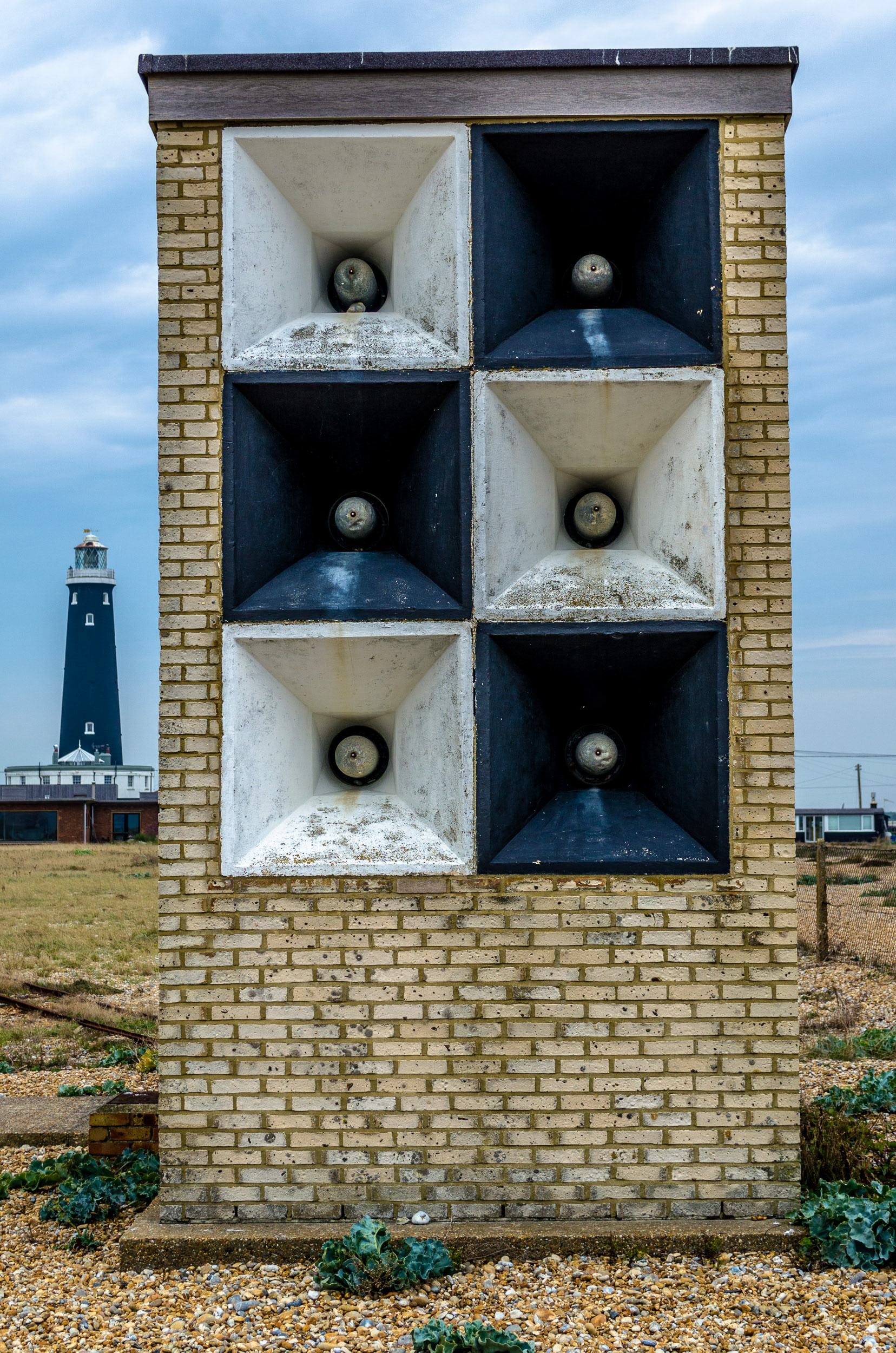Dungeness, nicknamed the 'desert of England', is one of the largest expanses of shingle beach in Europe. The ness that extends outwards from from shoreline in a triangular formation harbours remnants of an age old fishing industry, the landscape littered with rundown fishermen’s shacks, abandoned railway lines, rusted anchors, twisted piles of rope and mounds of discarded scallop shells. Two lighthouses and a power station loom menacingly above it all. The headland on the coast of Kent is also a national nature reserve and home to a remarkable variety of wildlife including over 600 different types of plant as well as insects such as moths, bees and beetles, and spiders; many of which are rare and can only be found in this area. The Denge listening ears are not far from the coastline. Designed and built by Percy Rothwell in 1928, these concrete acoustic mirrors were a used as an early warning system for detecting incoming aircraft during World War I.